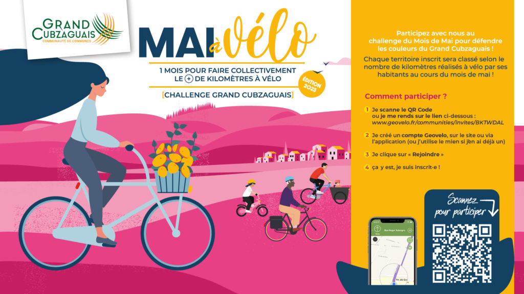 Dans le cadre de Mai à vélo, initiative nationale visant à promouvoir et encourager l’usage du vélo tout au long du mois de mai, le territoire du Grand Cubzaguais s’est inscrit pour la seconde année consécutive au Challenge d’activité national organisé sur l’application Geovelo.